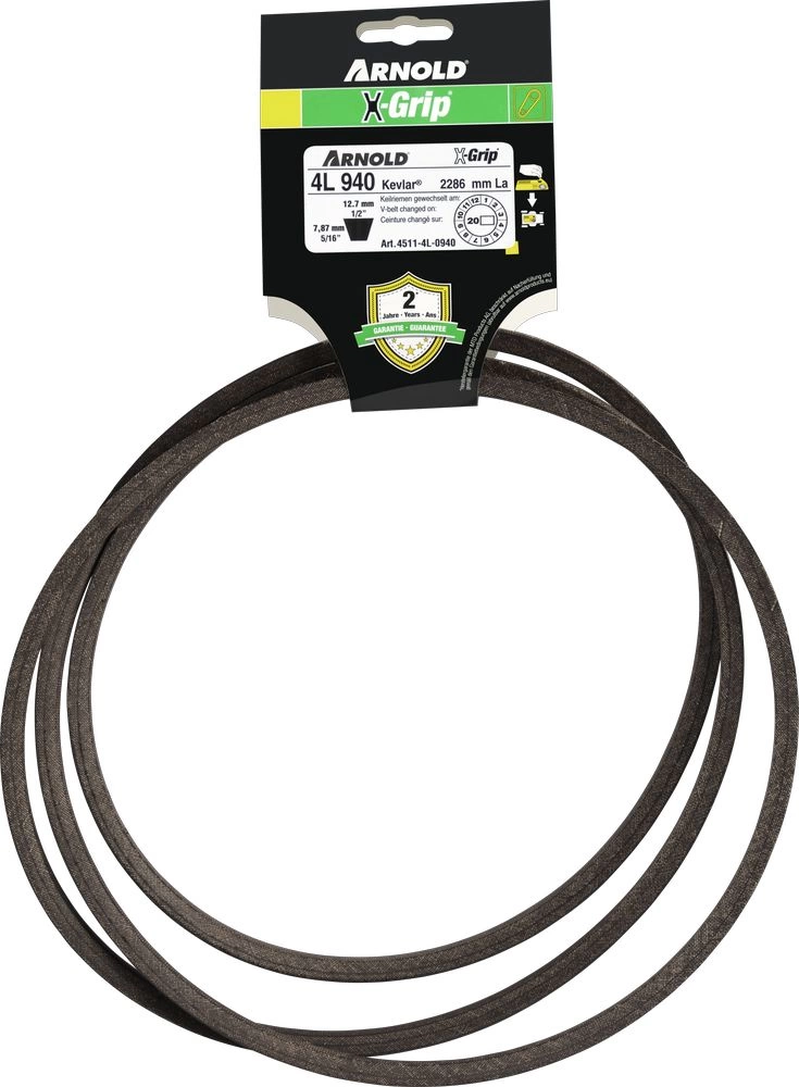 Les courroies X-GRIP de la marque ARNOLD sont garanties 2 ans ! Vous trouverez ci-dessous les conditions de garantie des courroies X-GRIP de la marque ARNOLD, sous la rubrique « Informations ».
